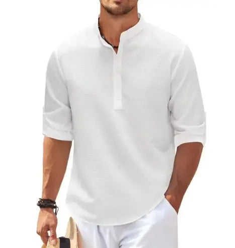 This men’s long sleeve shirt is made from lightweight and breathable polyester. It features a solid color, stand collar, and long sleeves for a simple yet stylish look. The classic slim fit is perfect for casual wear and versatile enough to pair with suit pants, casual pants, or jeans. Ideal for everyday activities, parties, dates, and travel.